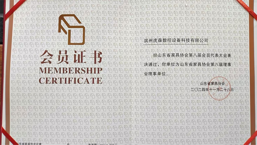 濱州虎森數(shù)控設(shè)備科技有限公司榮膺山東省家具協(xié)會理事單位,共譜行業(yè)新篇