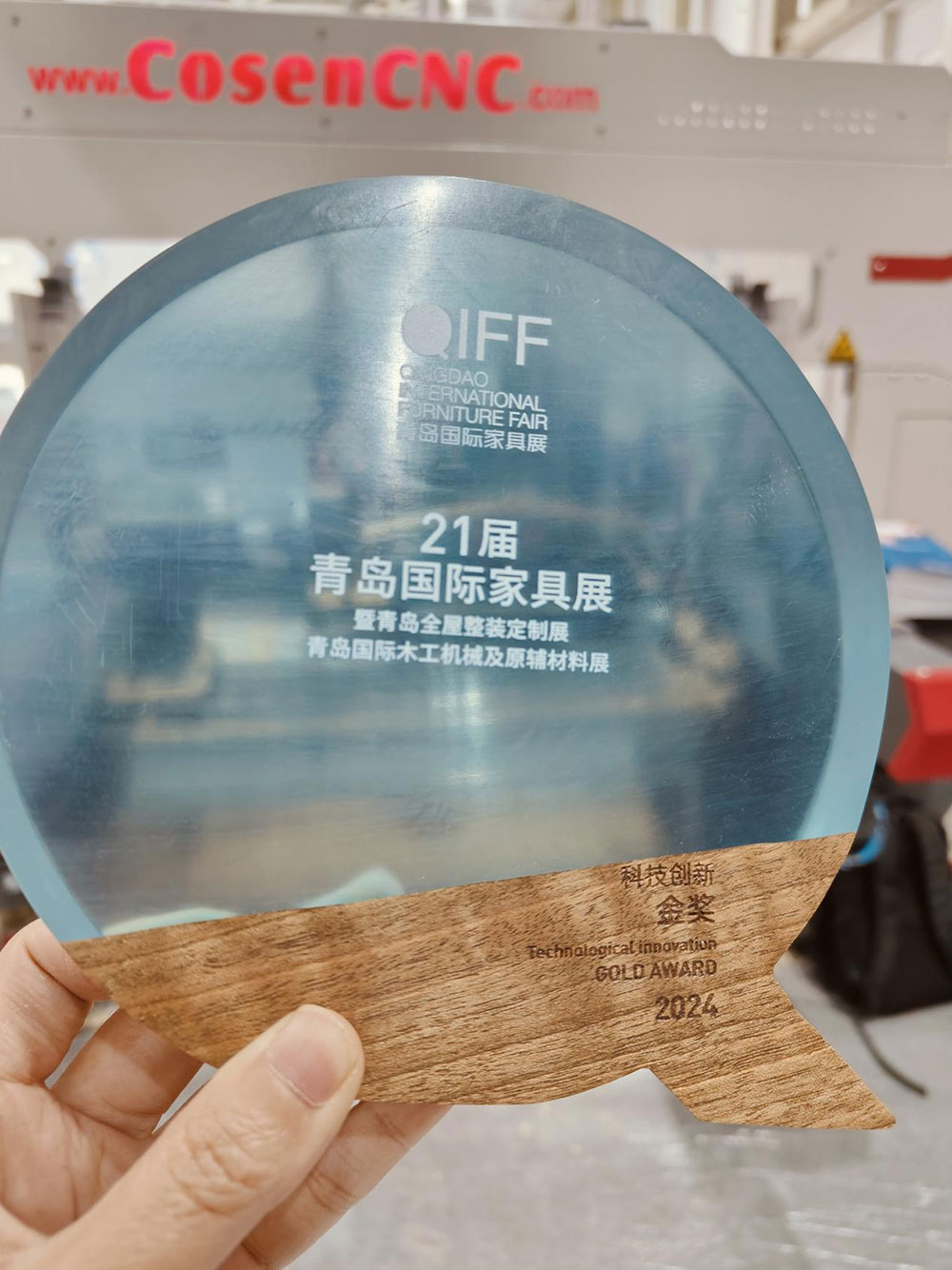 Binzhou Cosen CNC Equipment Technology Co., Ltd. participated in the Qingdao International Furniture Exhibition and won the Gold Award for Technological Innovation, returning home with honor