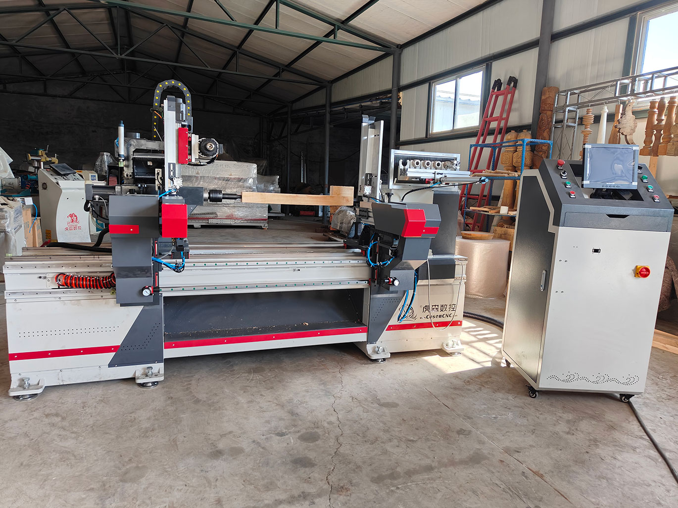 4軸數(shù)控車床L623AT共8工序, 自動(dòng)上下料.自動(dòng)砂光, 多功能一體機(jī)。可以車,銑,鉆孔,拉槽,鏤空,拉線,雕刻;